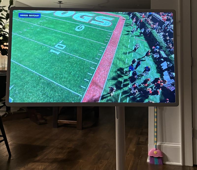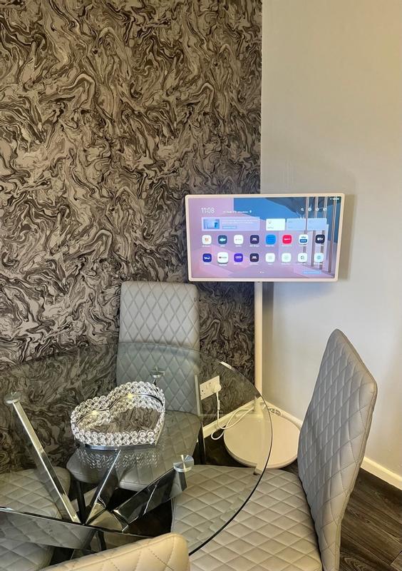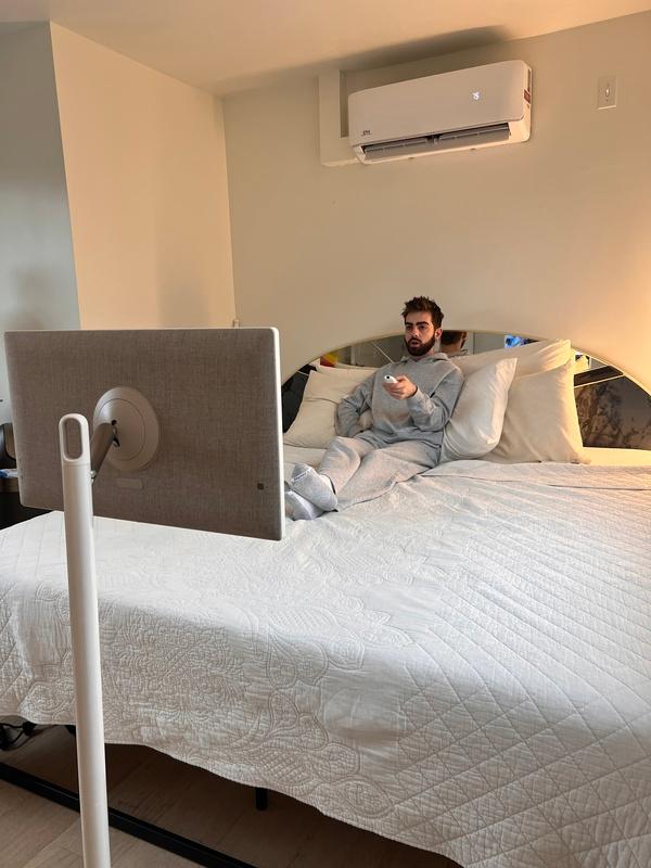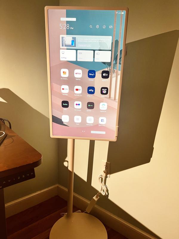 Als Mutter von Zwillingen hat mir der LG StanbyMe Fernseher das Leben sehr erleichtert, da er mich und meine wachsende Familie optimal unterstützt. Er ist praktisch, weil er sich rollen und verstauen lässt.